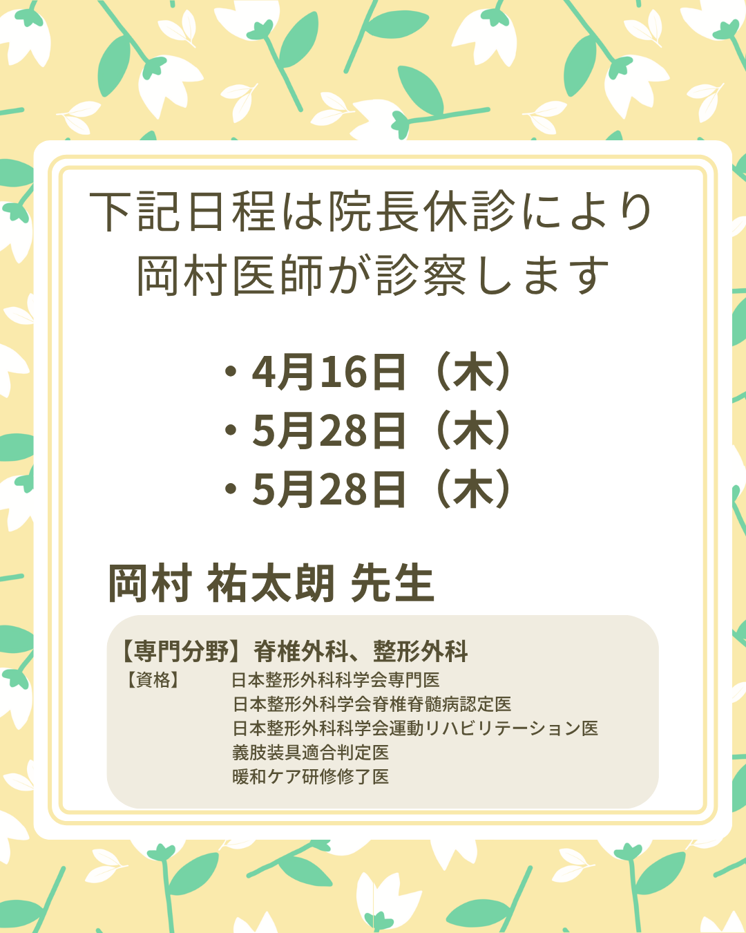 下記日程は院長休診により