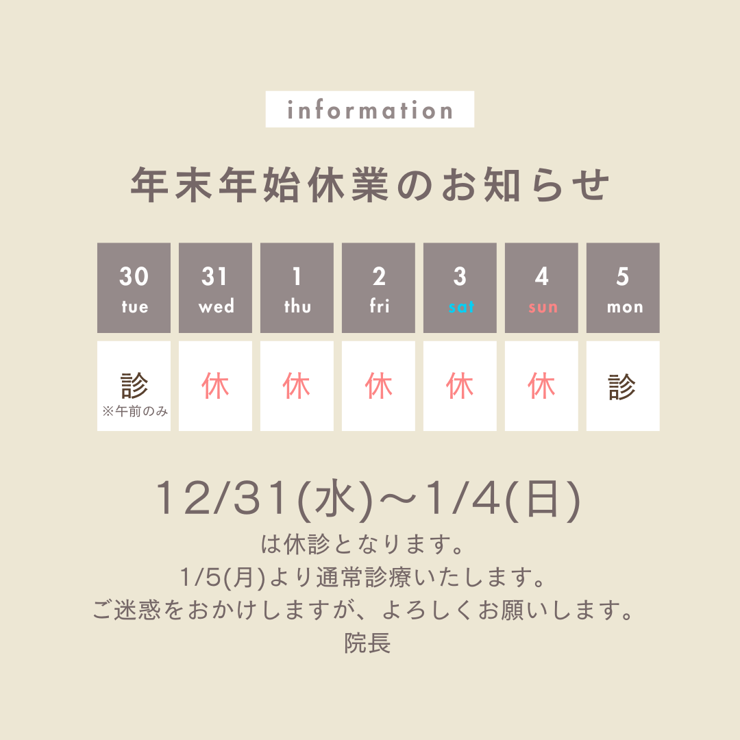 12/31(水)〜1/4(日) ※12/30(火)は午前のみ診療
